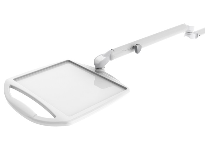 The new tray holder arm has the ability to move the support table in all directions with a new design, while keeping it perfectly aligned.
