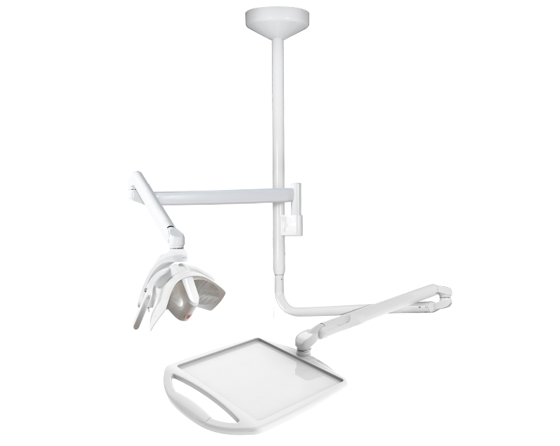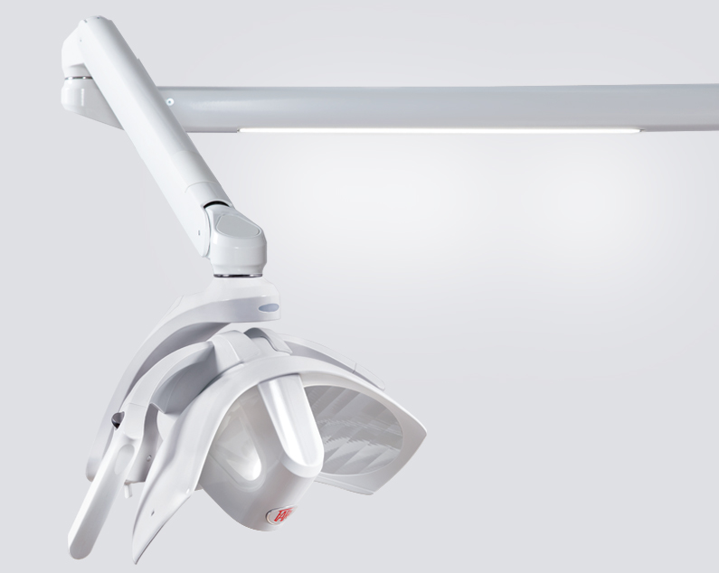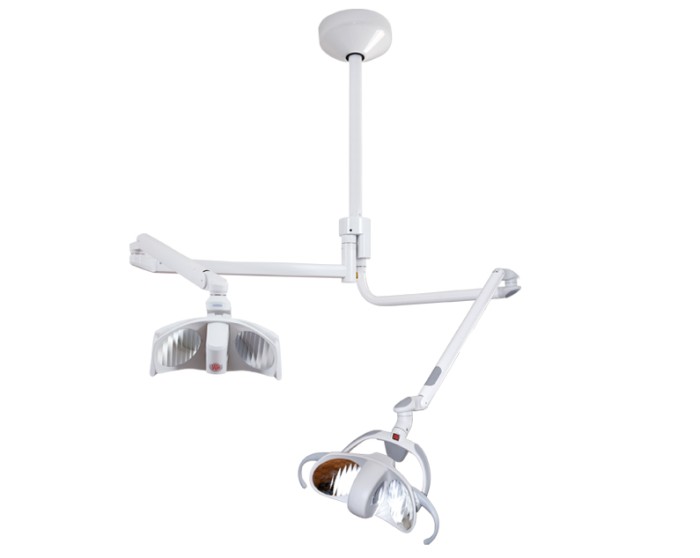 Its ergonomic combination makes the most of the work area allowing complete freedom of movement. In particular, the version with dual lamp offers the possibility of enhancing the illumination of the surgical field and increases the scialytic effect of the lamps, giving more comfort to the doctor and his team.