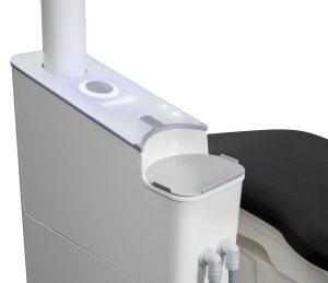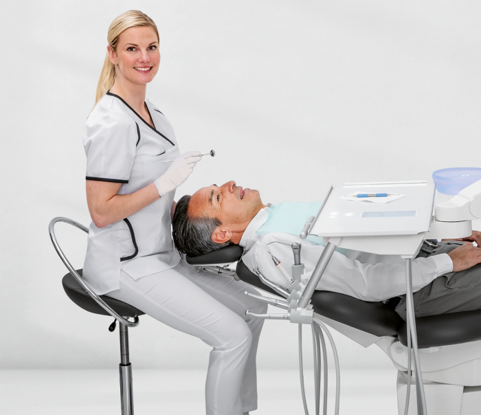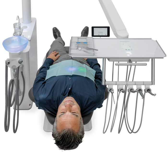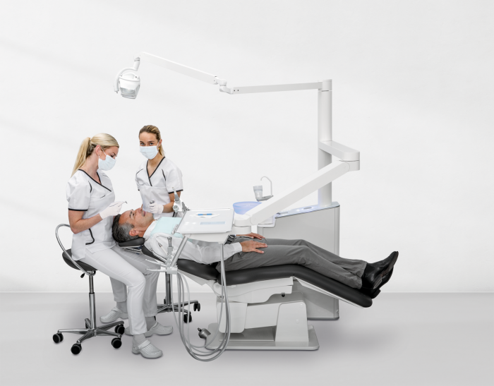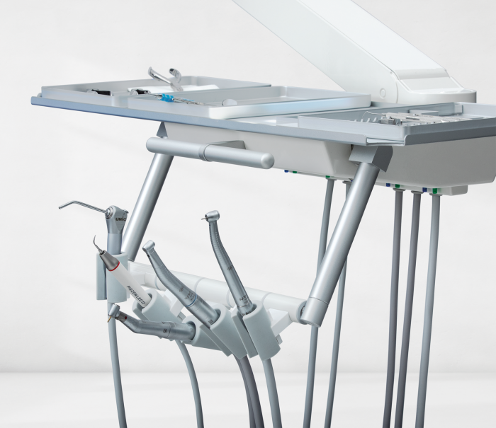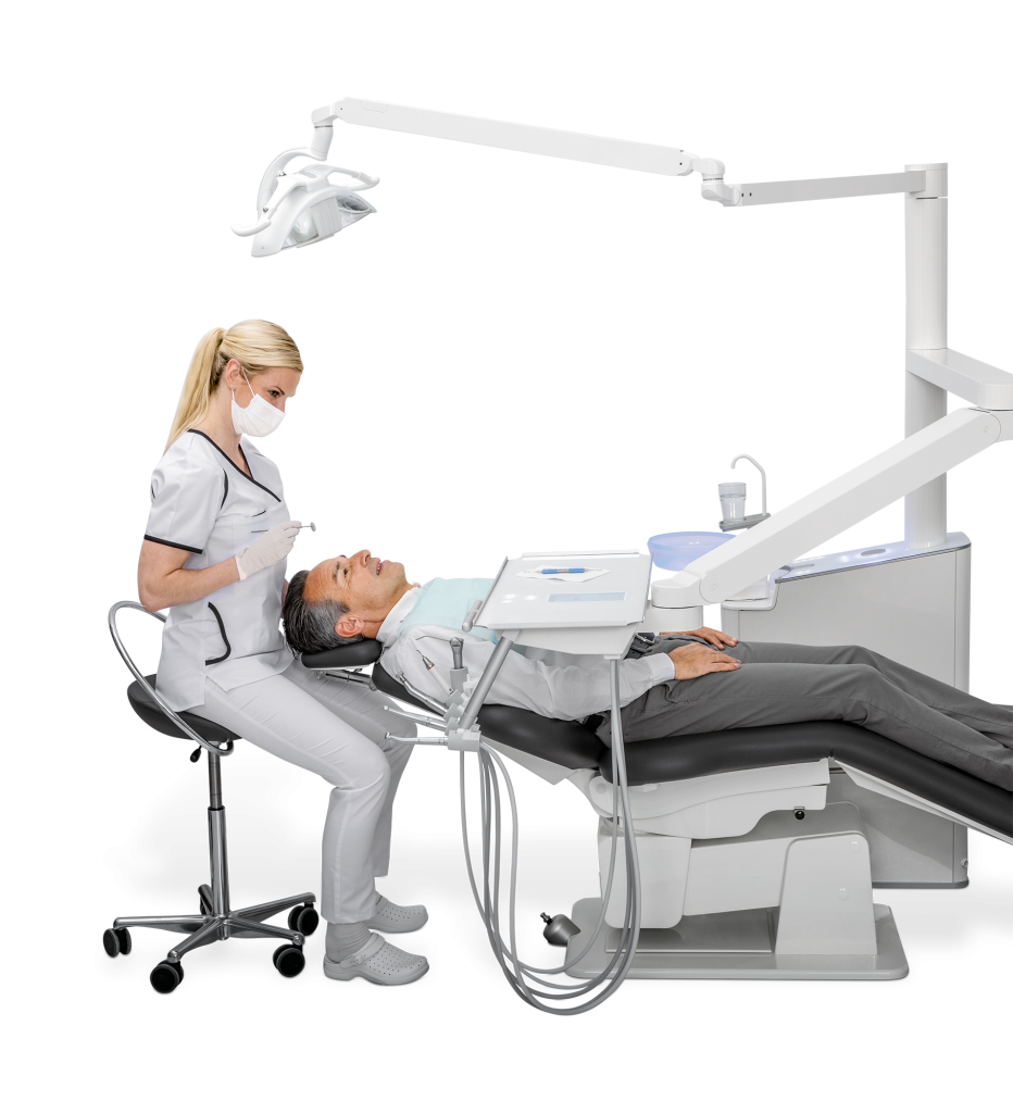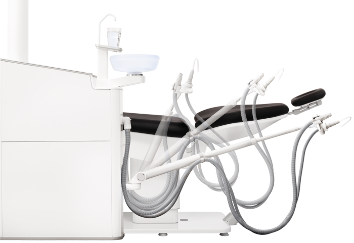 Some choose to combine the dental care unit and patient’s chair into one locked unit. The disadvantage with this, however, is that you are then unable to freely design your practice and position the dental care unit and patient’s chair individually in relation to each other.