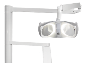 The light head is fitted with two mirrors that ensure a shadow-free working area. The light arm has a length that makes it easy to light up from behind the patient’s head and illuminate the lower jaw.
