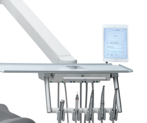 Alternatively, it is also possible to mount an iPad/tablet holder on the delivery tray for displaying e.g., X-rays.
