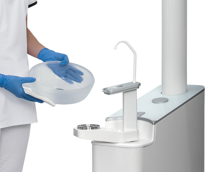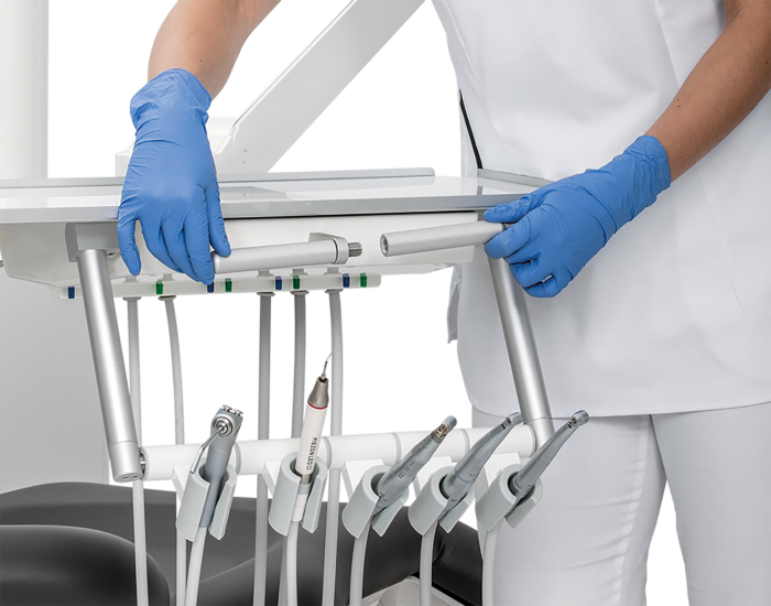 The aluminium handles, instrument cover and spittoon bowl can be easily removed for cleaning, and with several sets of these, you can easily switch between patient treatments.