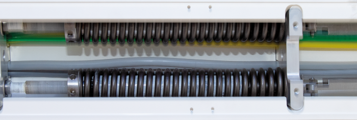 All movable joints in the dental care unit arm are equipped with double needle bearings. This ensures that it is very easy and comfortable to move around on the delivery tray. In addition, the needle bearings in the Heka G+ are oversized to ensure that, right from the start, the movement is maintained throughout the Heka G+‘s lifetime and at the same time functions with millimetre-fine accuracy in any position, even with the varying loads from the tray, monitor, X-ray and light.