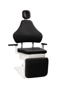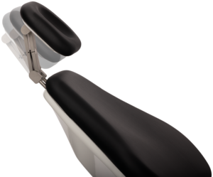 When transitioning the patient from a seated to supine position, the chair moves in a smooth, almost floating motion designed to support the body’s natural anatomy, particularly the relationship between the back and neck.