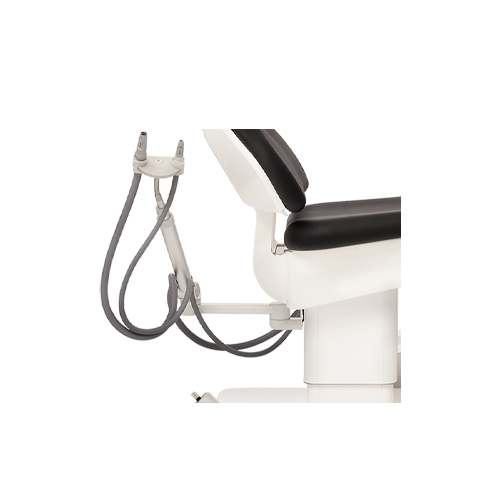 A flexible telescopic arm with an assistant element can be added directly to the chair, making it easy to switch between right- and left-handed treatment in seconds, without tools.