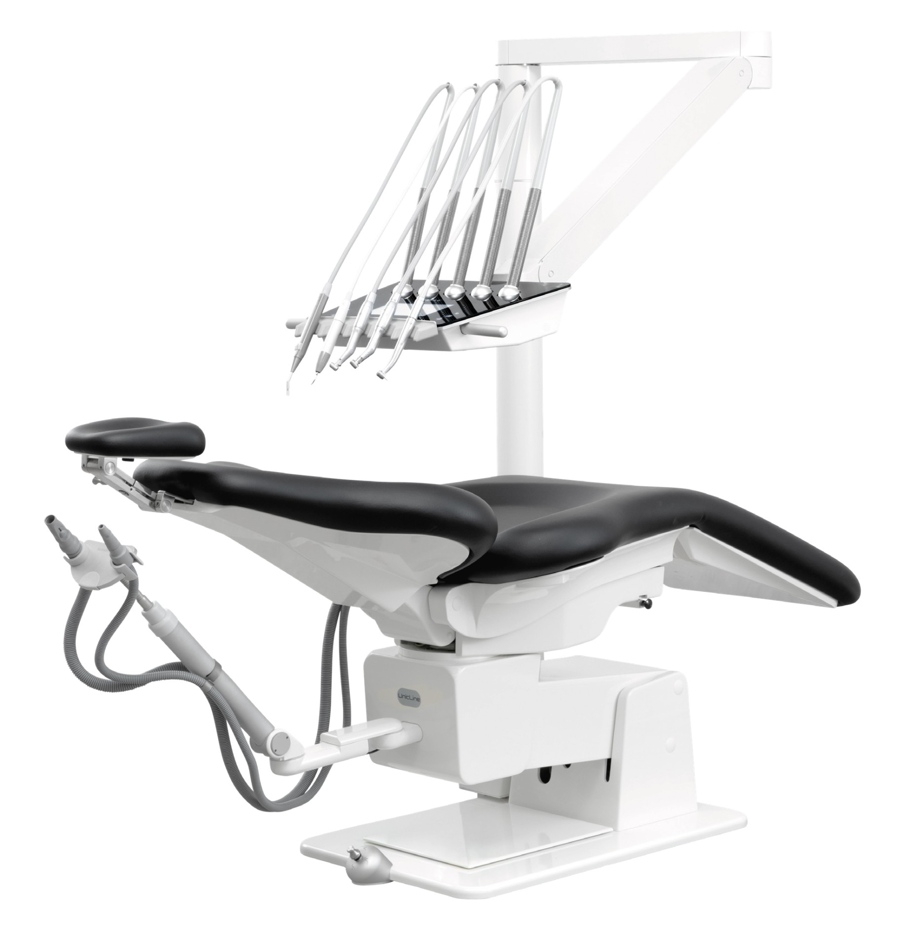 The delivery system on the Heka S+ Pillar is identical to the Heka S+ and thus has the same ergonomic balanced suspension of the instruments and the hygienic glass surface with integrated touch display that is easy and quick to clean.