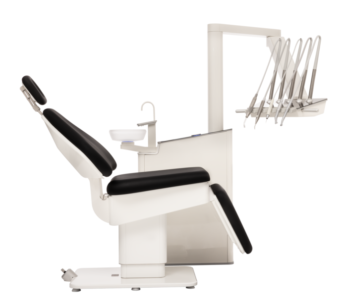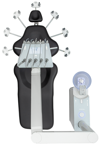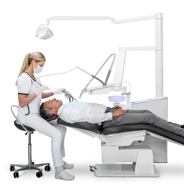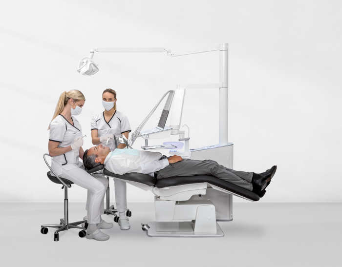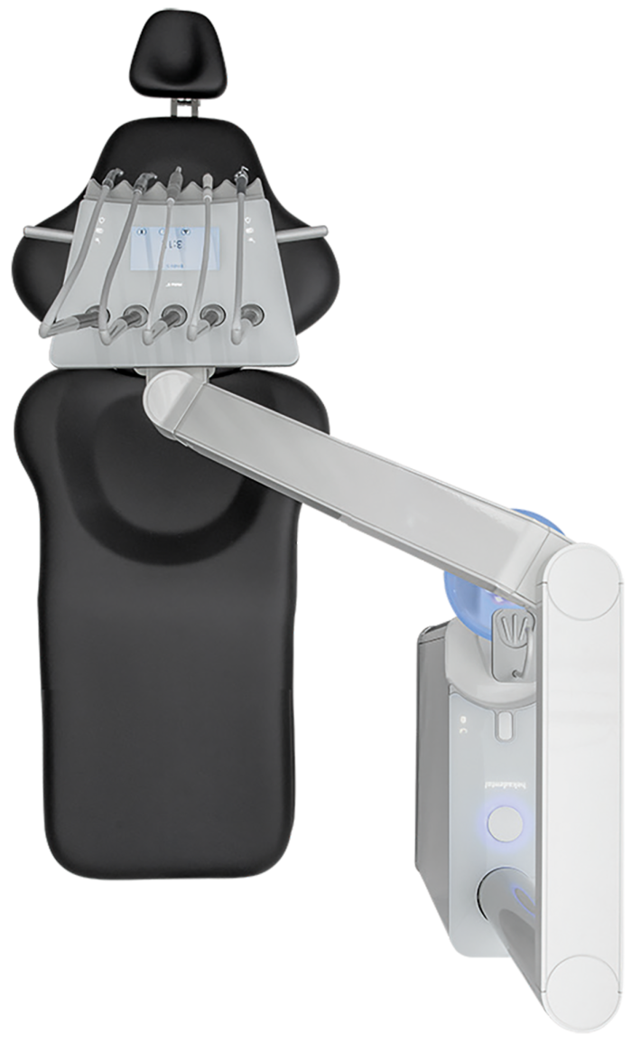 Some choose to combine the dental care unit and patient’s chair into one locked dental care unit. The disadvantage with this, however, is that you are then unable to freely design your practice and position the dental care unit and patient’s chair individually in relation to each other.