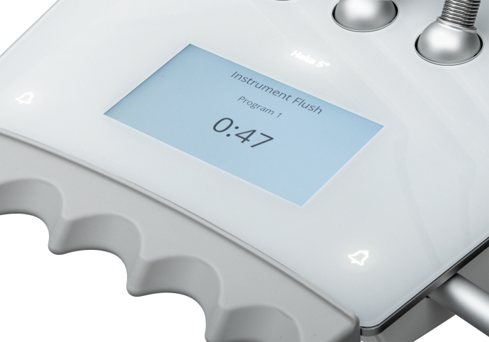 The Heka S+ can be supplied with automatic instrument water flushing. This ensures that the water system, tubes and instruments are flushed through and ready for the next patient – quickly and easily.